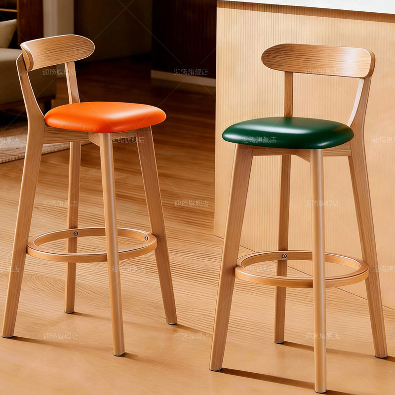 实木吧台椅家用靠背椅子北欧酒吧椅高脚凳现代简约奶茶店吧台凳子