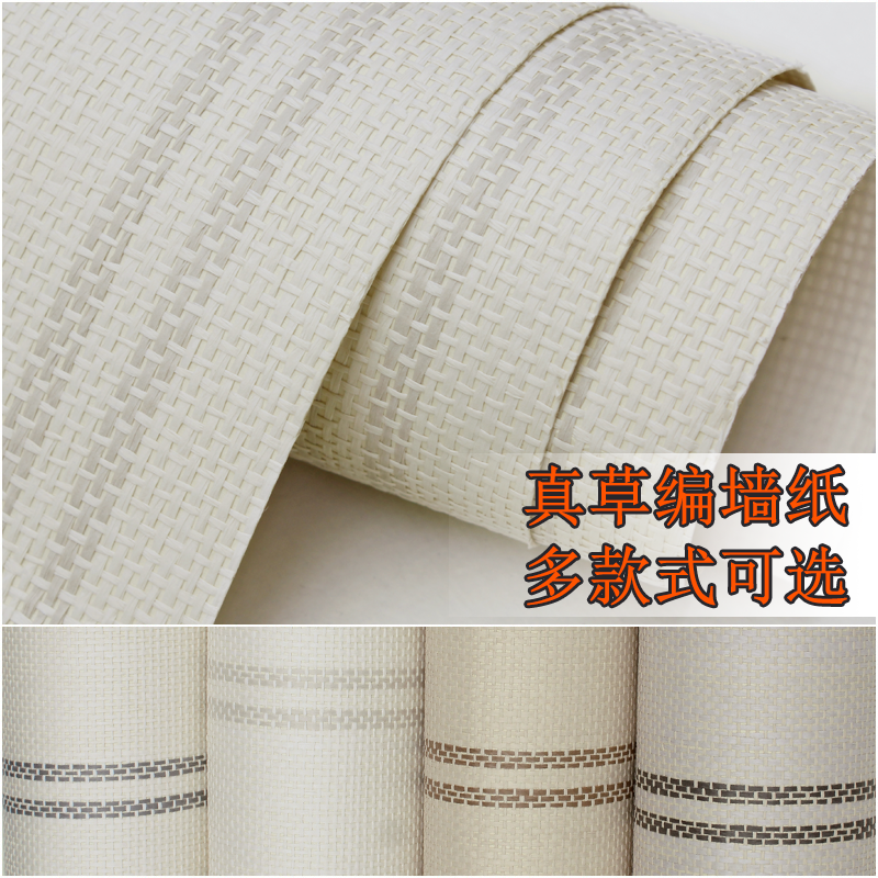 草编墙纸天然壁纸编织榻榻米书房客厅电视背景墙简约现代条纹壁纸