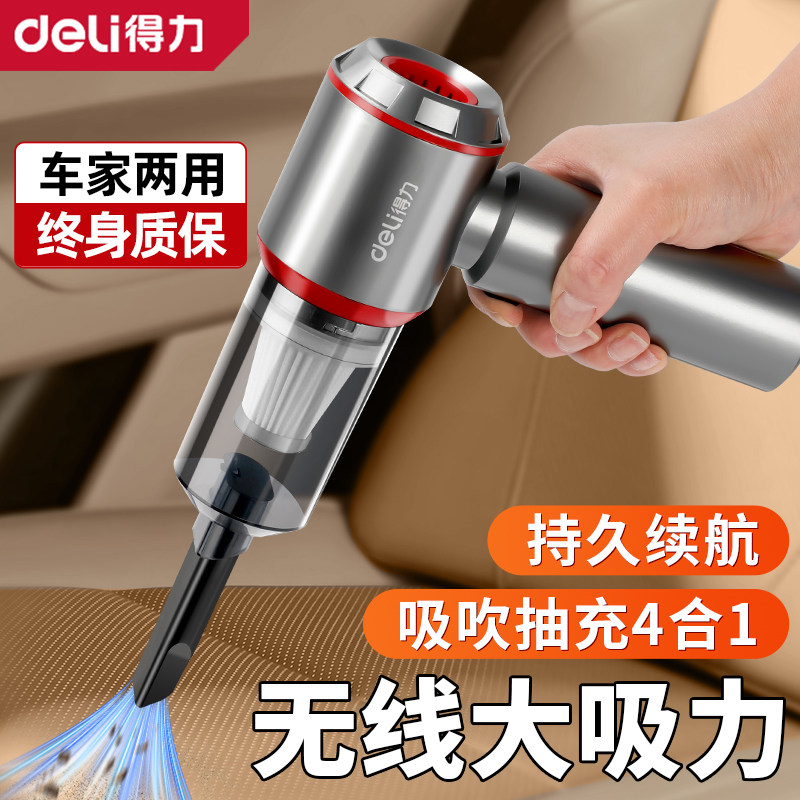 得力车载吸尘器手持小型超强大吸力汽车家用无线充电两用吹吸尘机