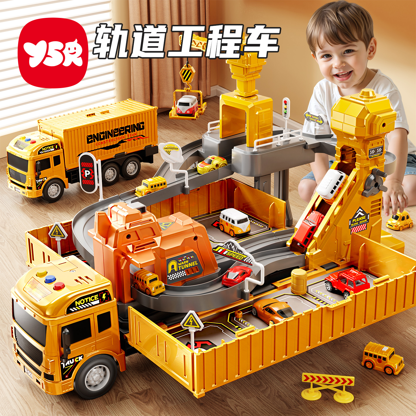 变形轨道合金工程车套装男孩新款多功能货柜车儿童小汽车吊车玩具