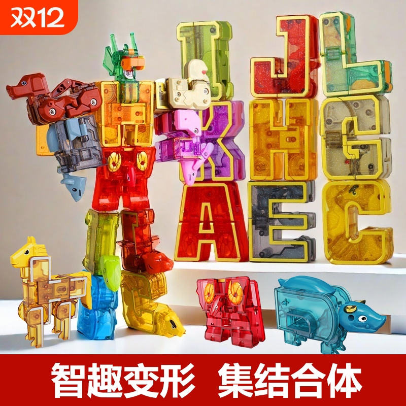 26字母变形玩具套装恐龙机器人金刚ABC动物男孩益智女孩儿童礼物