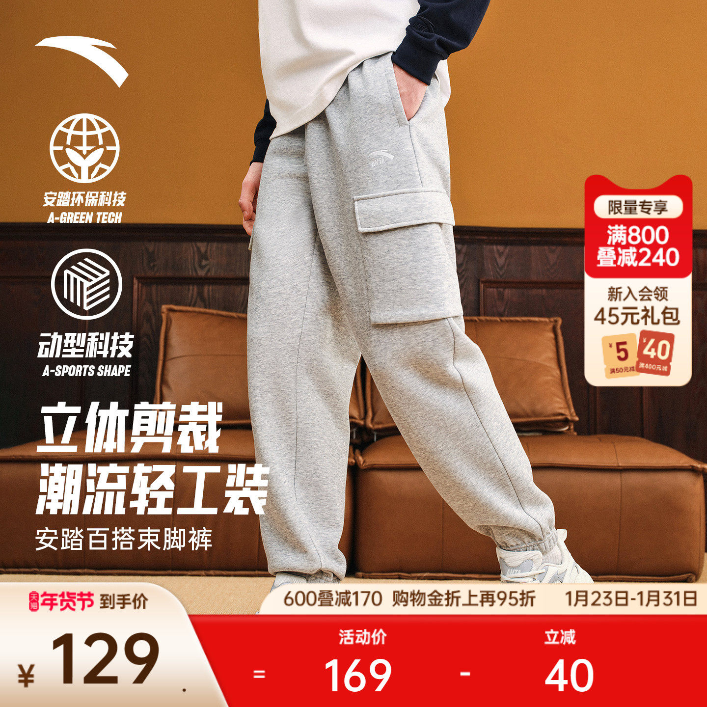 安踏美式轻工装运动长裤男士2025新款潮流束脚裤透气休闲裤卫裤子