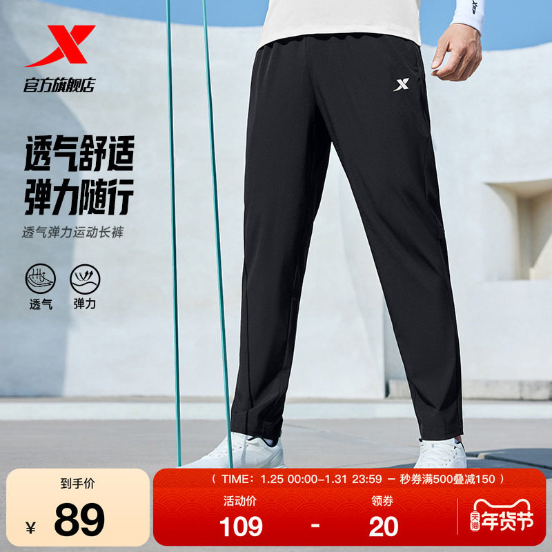 特步运动裤男士冬季透气新款卫裤针织裤直筒裤子跑步通勤休闲长裤