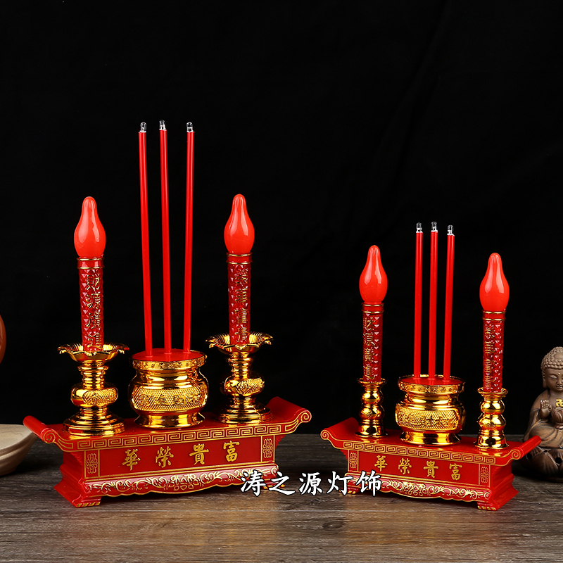 插电蜡烛灯电池仿真香烛台供佛电子香炉上香财神贡灯led无烟电烛