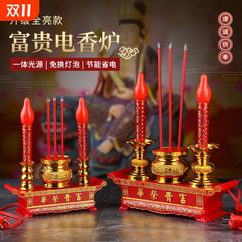 LED电子香炉家用供佛财神关公观音仿真香烛台供灯两用安全长明灯