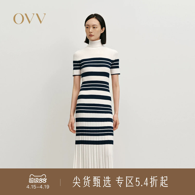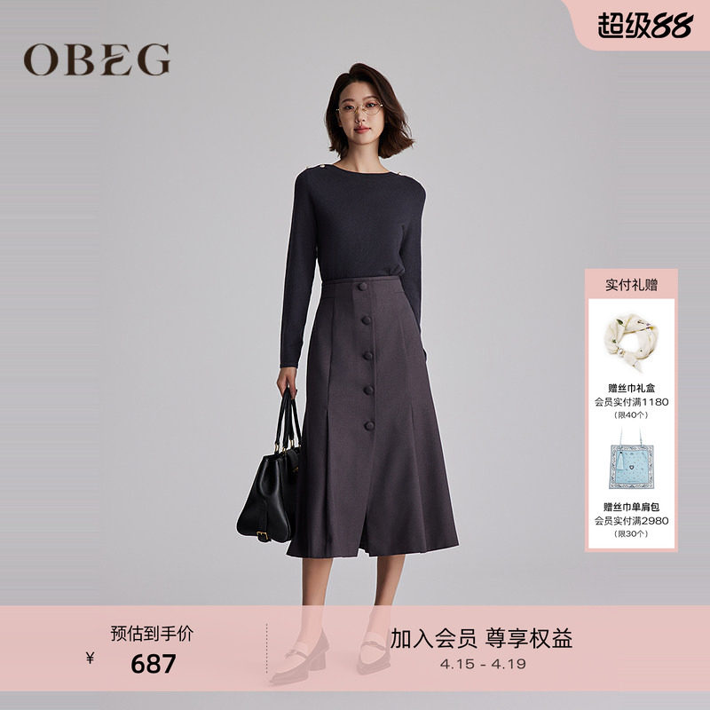 OBEG欧碧倩假两件针织拼接长袖连衣裙女冬轻熟气质中长裙10484178
