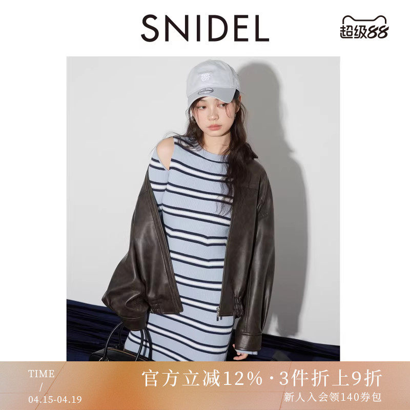 SNIDEL2025秋冬新品简约圆领长袖开衫背心针织连衣裙SWNO255042