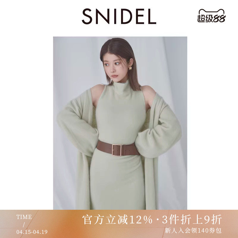 SNIDEL秋冬款薄纱吊带半高领针织连衣裙两件套SWNO245065