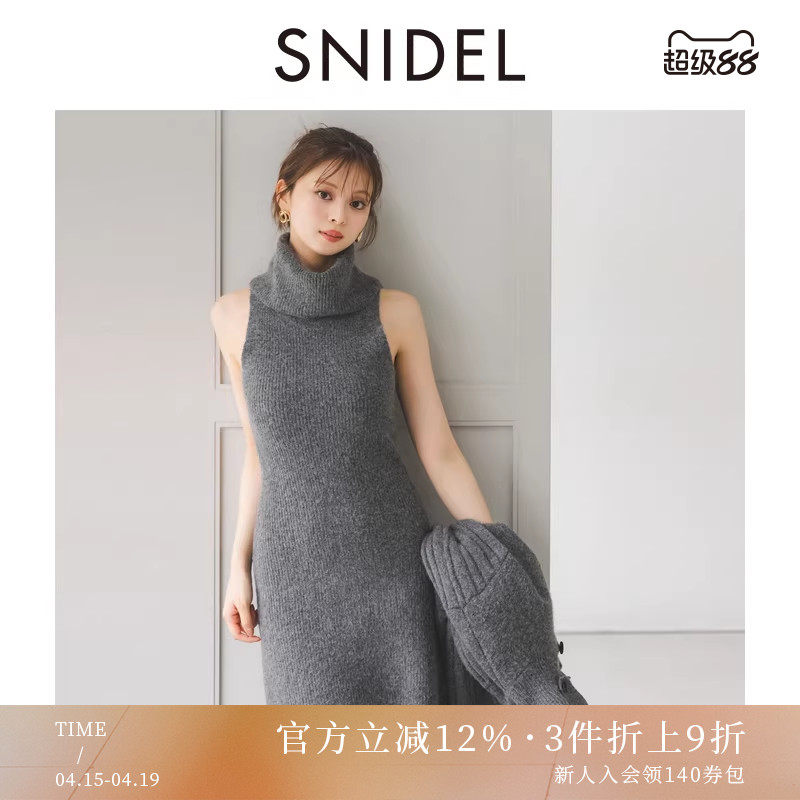 SNIDEL2025秋冬新品简约百搭纯色高领无袖针织连衣裙SWNO254190