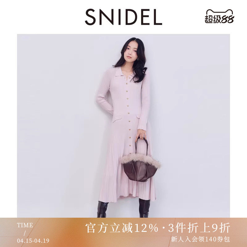 SNIDEL2025秋冬新品时尚翻领单排扣长袖收腰针织连衣裙SWNO255047
