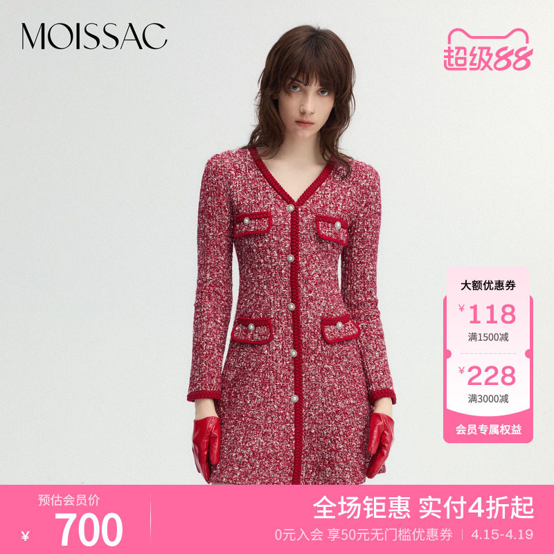 何衣见友加厚法式针织新年红色连衣裙日常敬酒订婚荡领长袖礼服冬