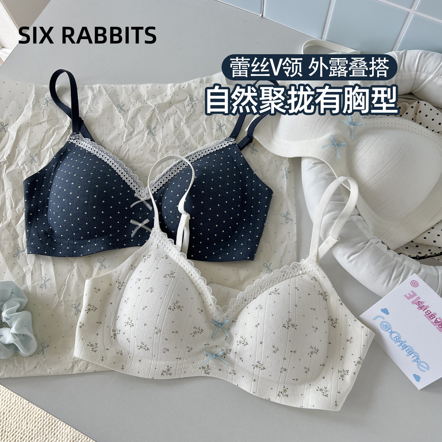 六只兔子内衣女小胸聚拢胸罩收副乳防下垂无钢圈蕾丝V领文胸套装