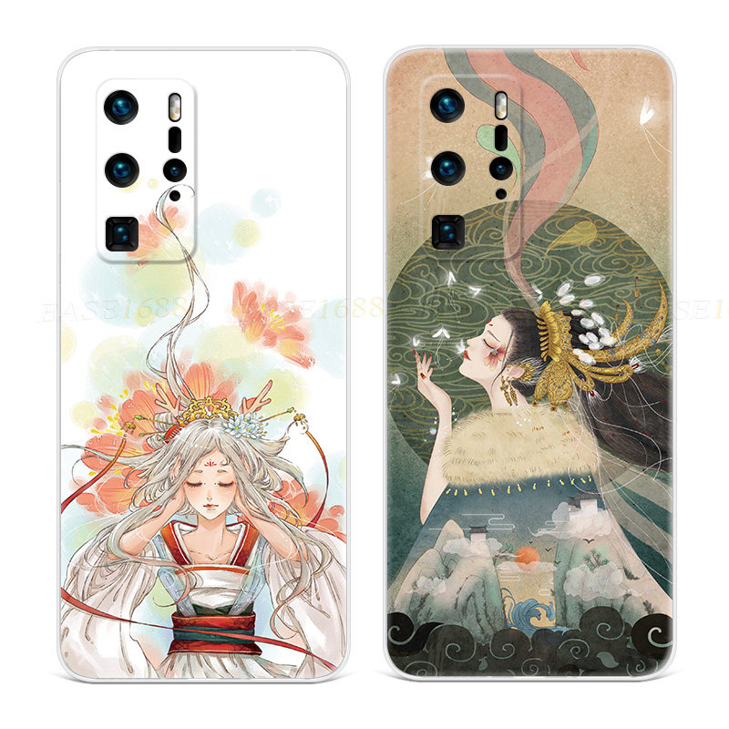 文艺插画少女适用华为p20手机壳p40p60pro+复古p9p10plus中国风软