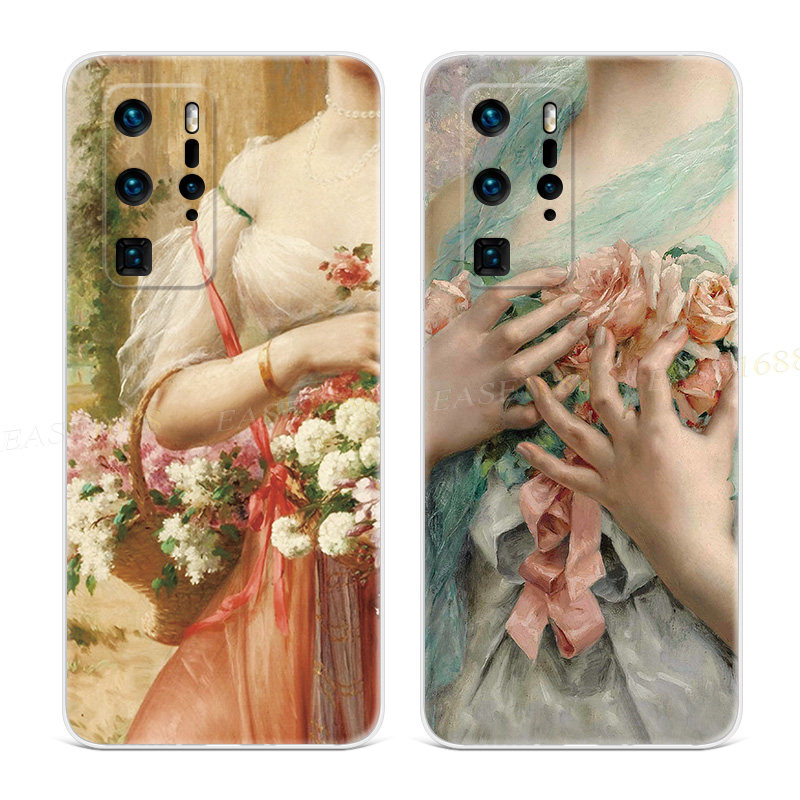 花朵少女油画适用华为p40手机壳p60p20pro复古p10p9plus文艺+女款