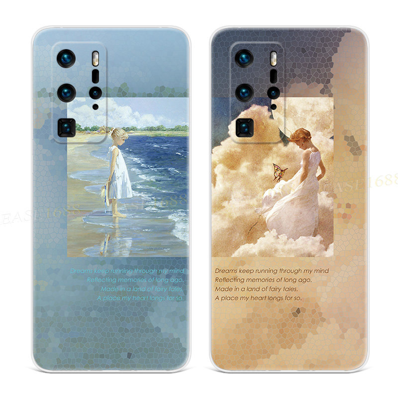 文艺小女孩适用于华为p60手机壳p40p20p10p9油画plus复古pro+女款