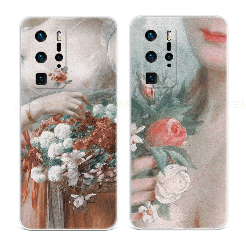 鲜花少女油画适用华为p40手机壳p60p20pro文艺p10p9plus甜美女款+