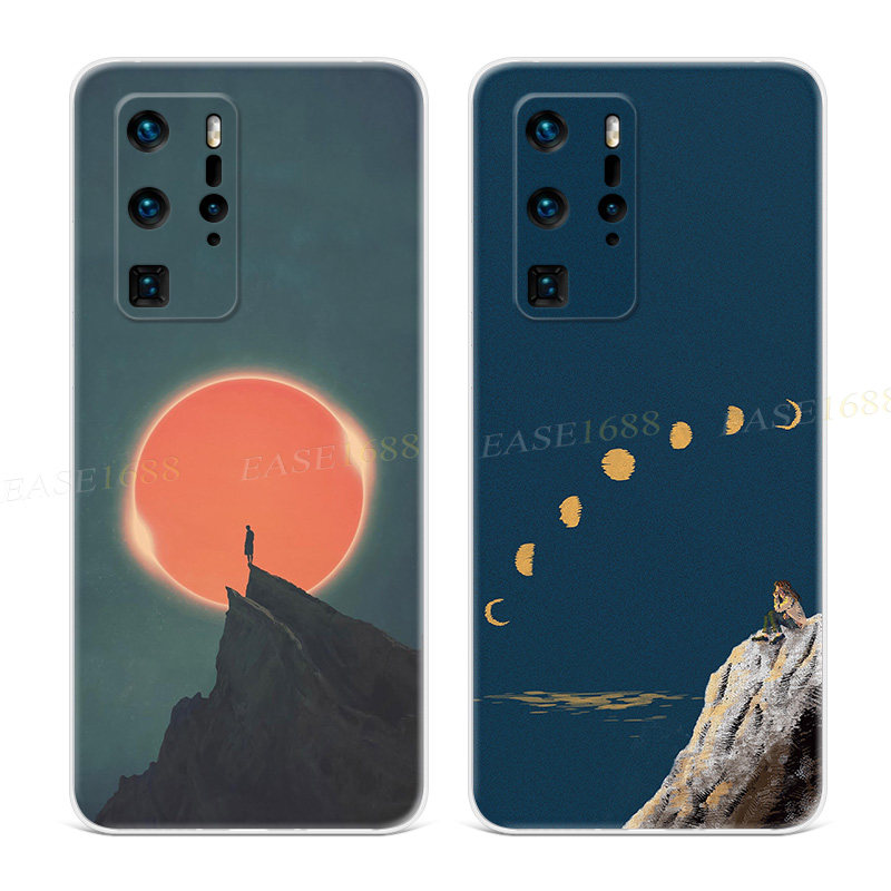 黑夜男女生适用华为p40p60p20pro手机壳p10p9plus冷淡风情侣插画+