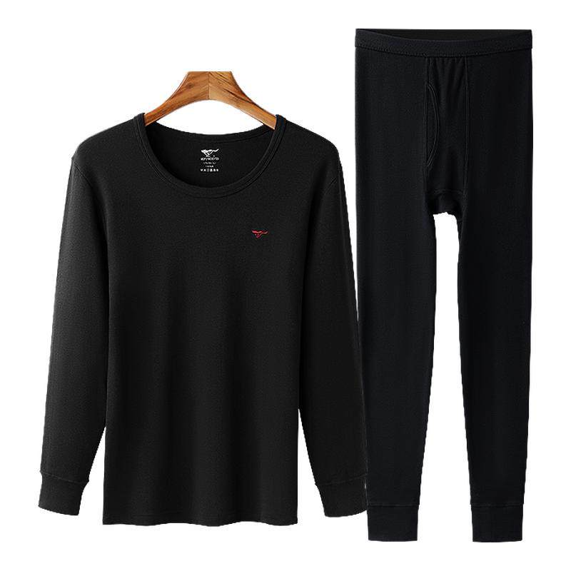 七匹狼男士秋衣秋裤套装纯棉全棉毛衫线衣裤冬季男式黑色保暖内衣