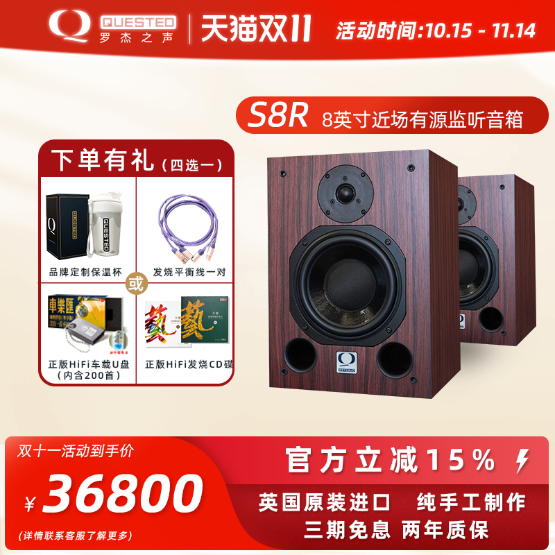 【QUESTED/罗杰之声】官方旗舰店 S8R有源监听音箱 英国原装进口