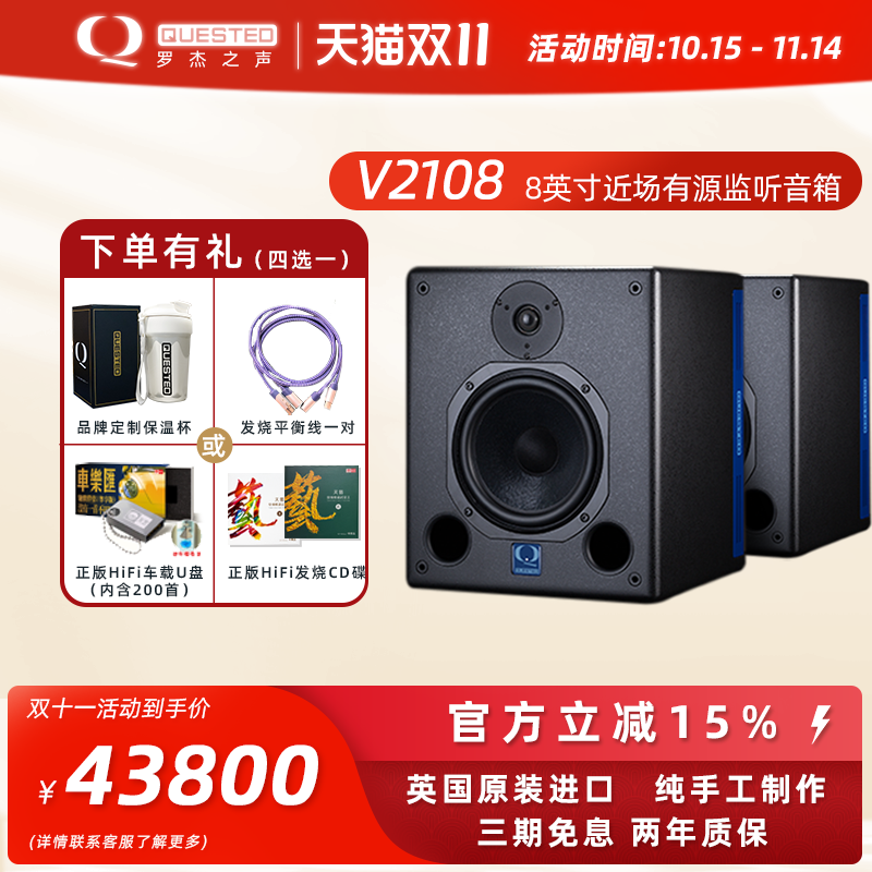 QUESTED/罗杰之声官方旗舰店V2108近场有源监听音箱 英国原装进口