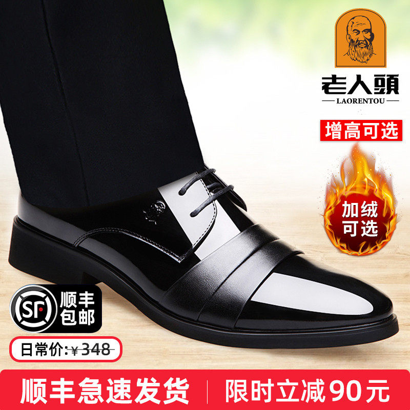 老人头男鞋秋冬新款商务正装男士皮鞋真皮内增高德比鞋新郎结婚鞋
