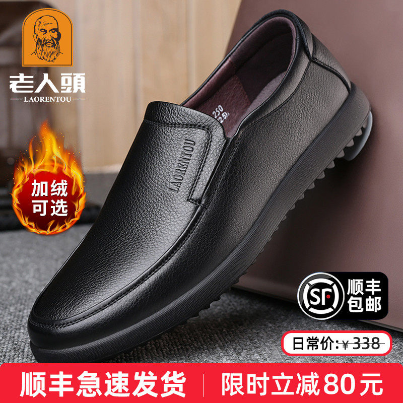 老人头男鞋冬季牛皮中年商务休闲皮鞋男真皮加绒男士正装皮鞋软底