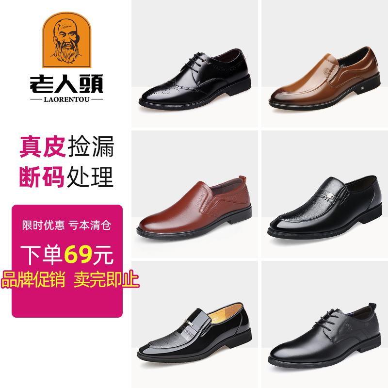 老人头男鞋特价真皮商务正装皮鞋男百搭清仓断码男士休闲皮鞋清仓