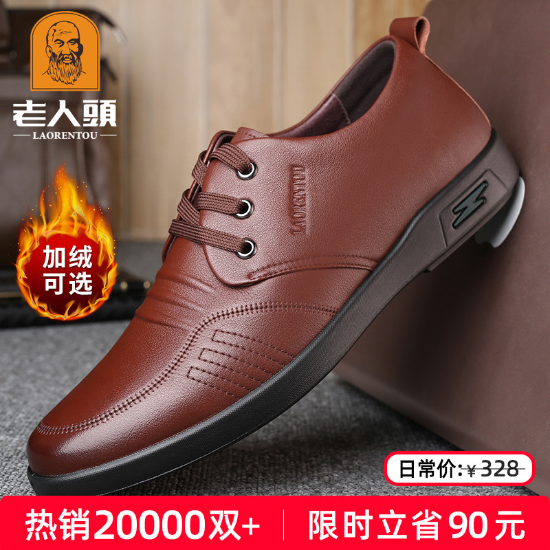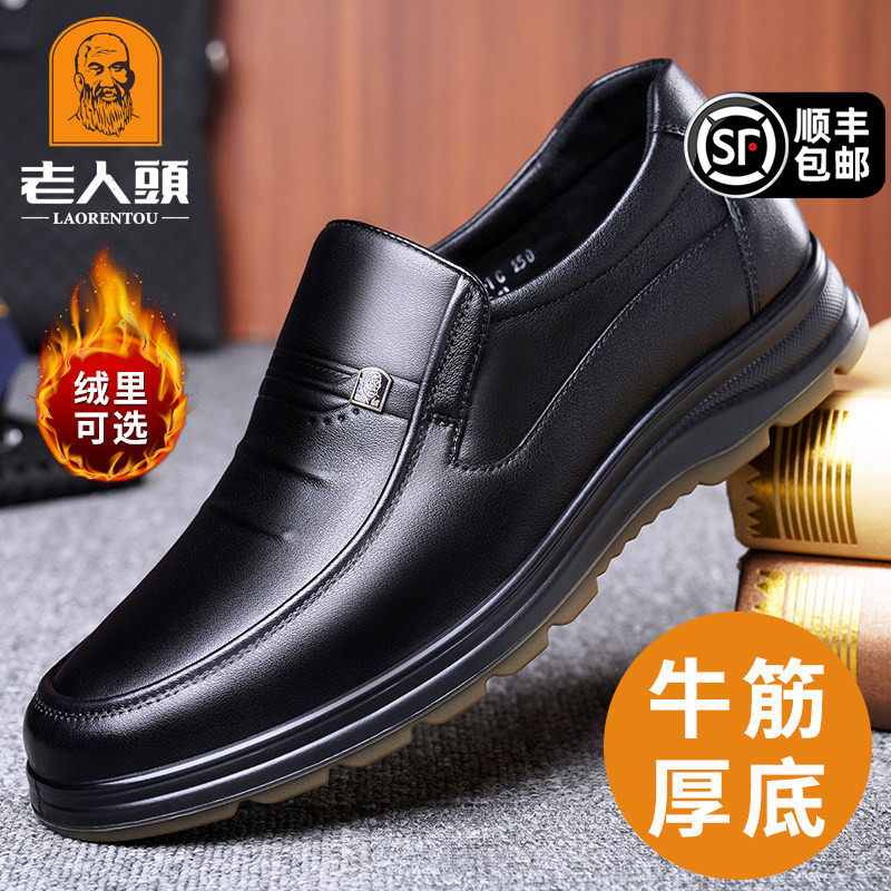 老人头男鞋冬季真皮商务休闲男士皮鞋耐磨牛筋底中老年爸爸鞋加绒