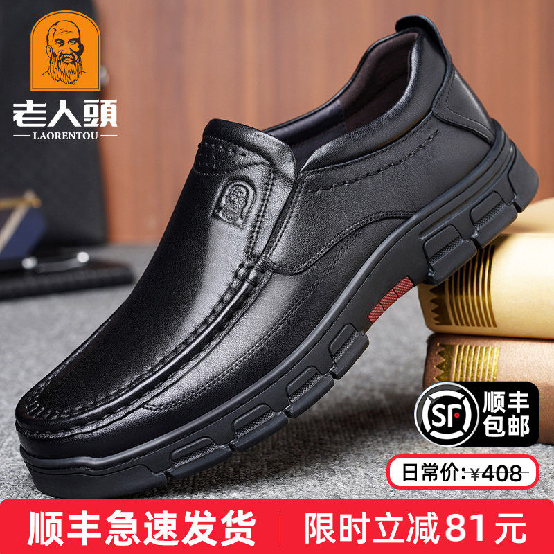老人头男鞋春季新款牛皮商务休闲男士皮鞋真皮软底透气中年爸爸鞋