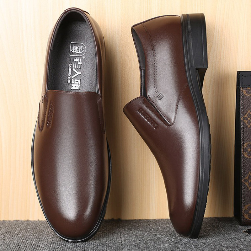 老人头皮鞋男2025春秋新款头层皮男鞋爸爸鞋耐磨防滑商务休闲皮鞋