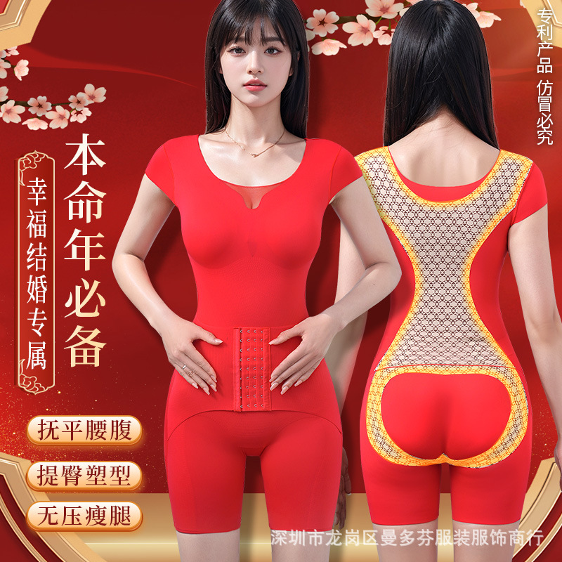 本命年大红色美人塑身衣加强版产后收肚束腹束身连体衣无痕瘦身衣