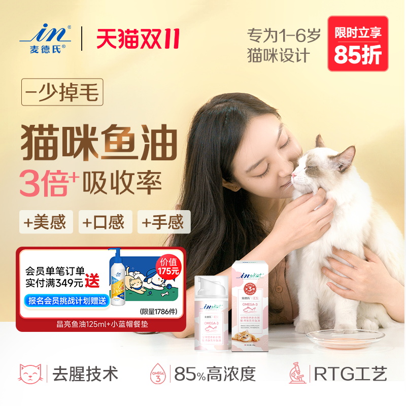 麦德氏鱼油猫用防掉毛脱毛宠物美毛猫咪专用omega3卵磷脂乳化鱼油