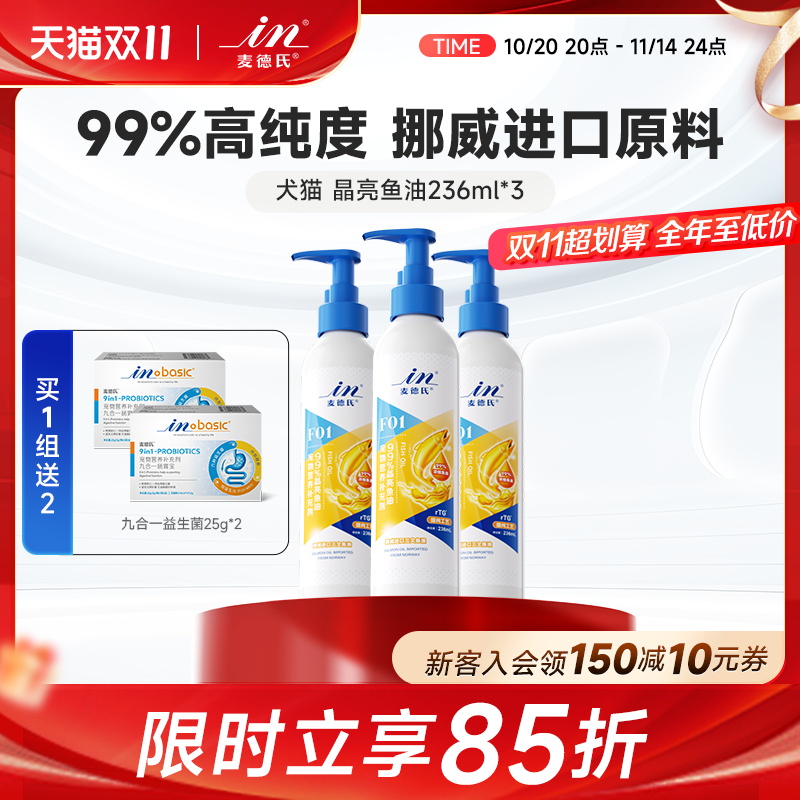 麦德氏鱼油猫用深海防掉毛宠物美毛猫咪专用omega3猫吃的乳化鱼油