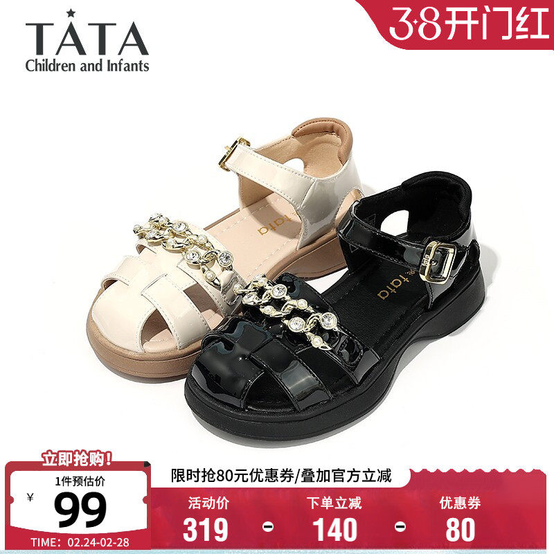 TATA他她童鞋时尚罗马鞋女童夏季透气凉鞋小女孩中大童软底公主鞋
