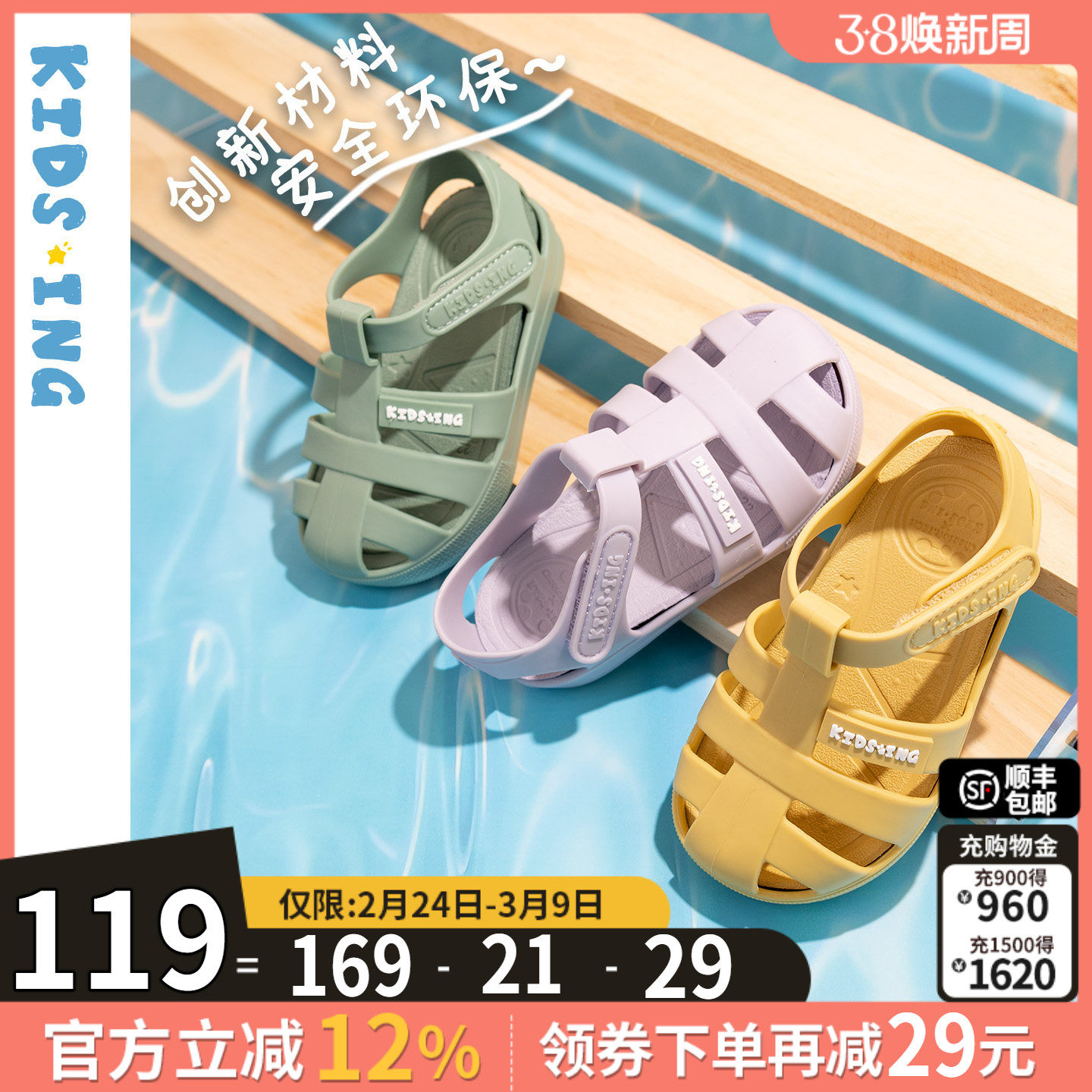 kidsing可迪星宝宝凉鞋罗马果冻鞋夏季儿童男女童小童软底防滑鞋
