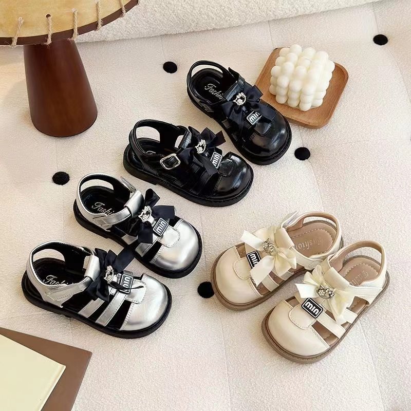 2025夏季新款女童可爱蝴蝶结公主凉鞋沙滩鞋包头编织女孩罗马凉鞋