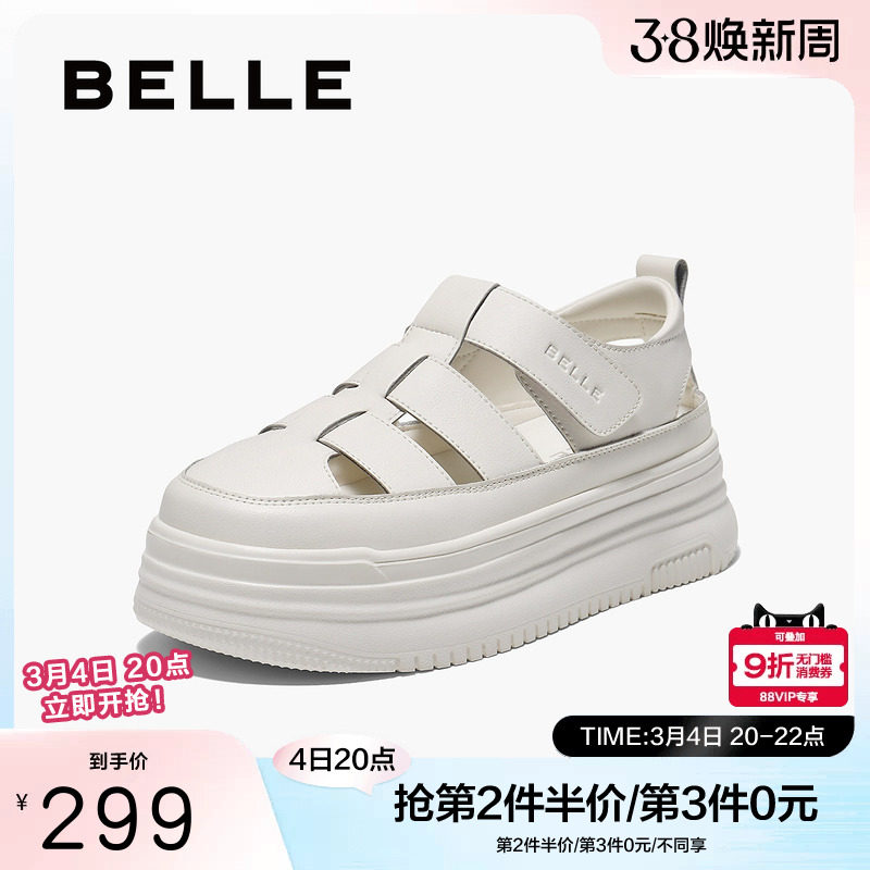 百丽透气罗马凉鞋女夏季新款包头厚底猪笼小白鞋子单鞋B2492BH5