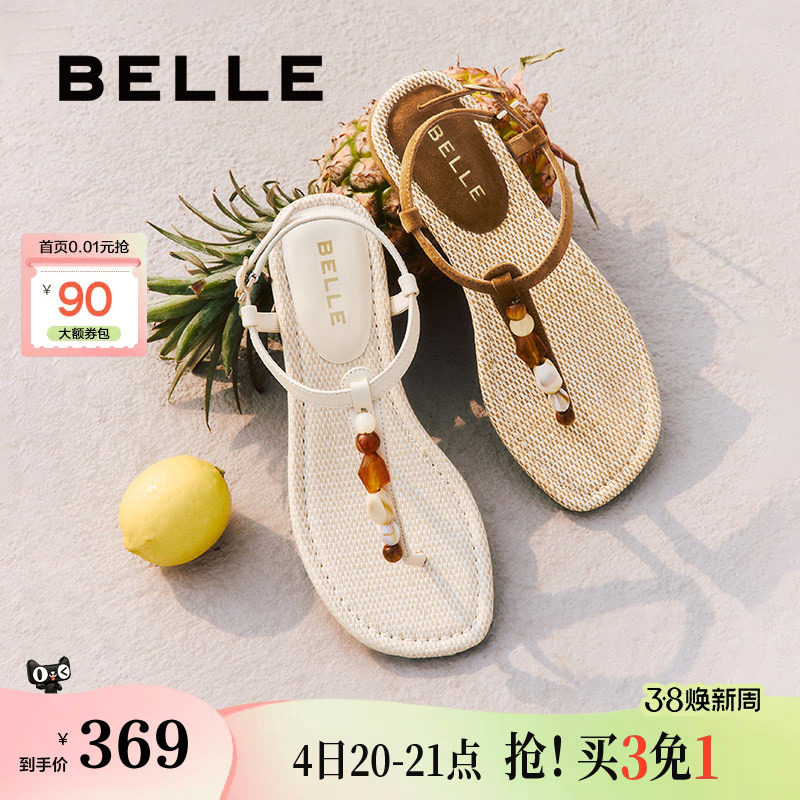 周雨彤李艺彤同款百丽幸运石夹趾罗马凉鞋子夏季人字拖女D8S1DBL5
