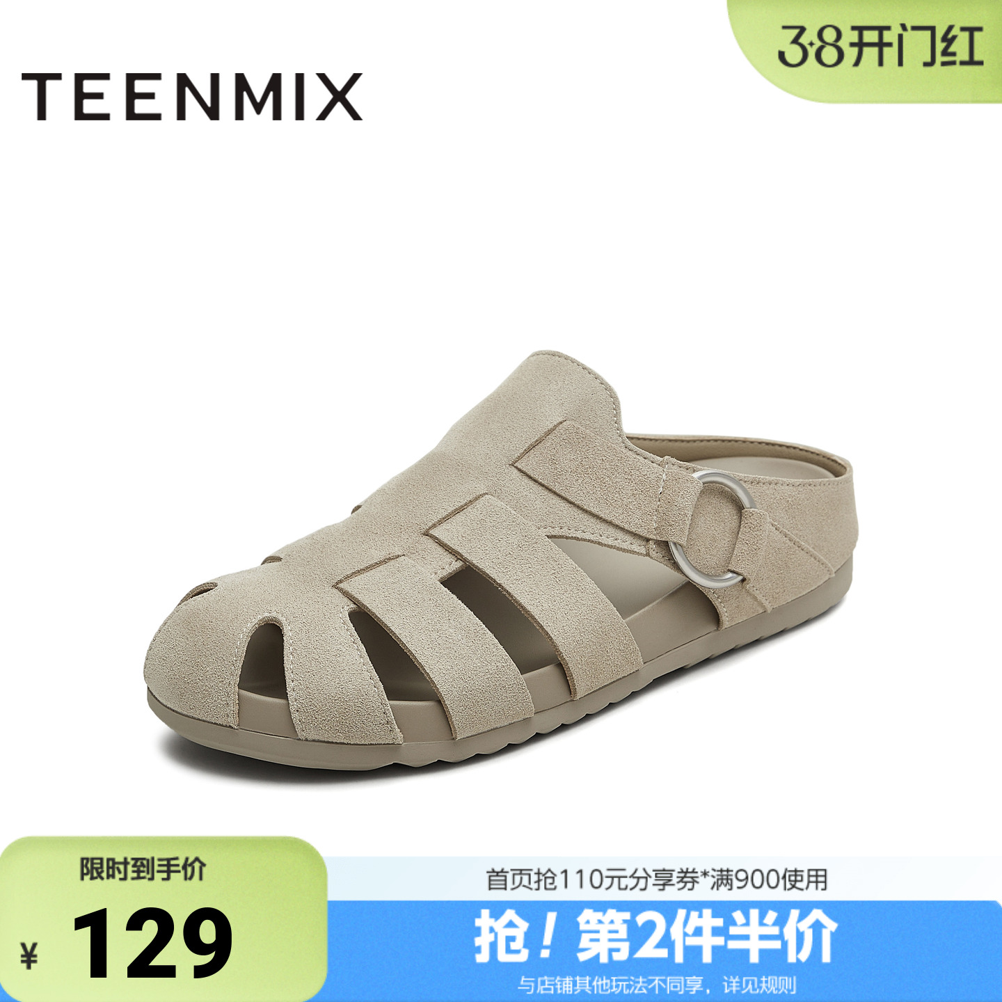 天美意2025夏新款休闲百搭半拖鞋复古百搭女罗马凉鞋KL012BL5