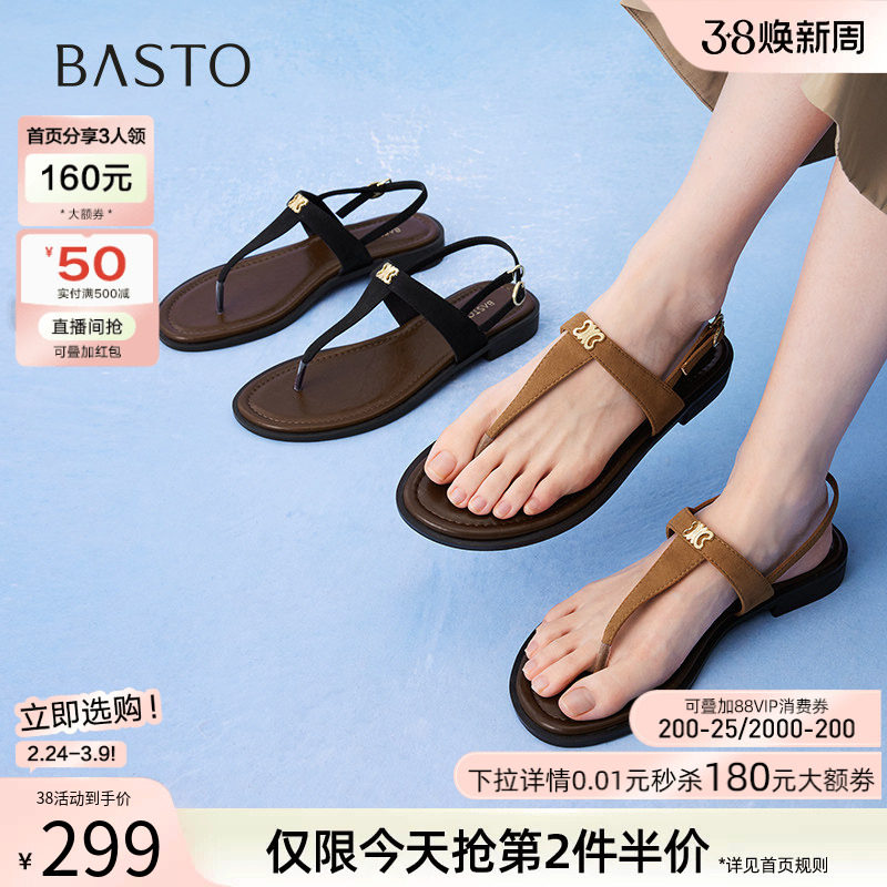 【小彩旗】百思图夏季新款休闲厚底夹趾外穿女罗马凉鞋B5725BL5