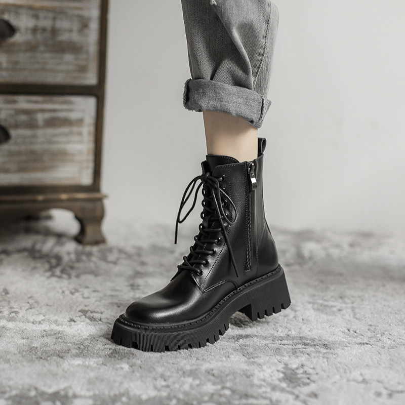 日本GP赵露思马丁靴女秋冬季单靴厚底增高英伦风瘦瘦靴短靴系带靴