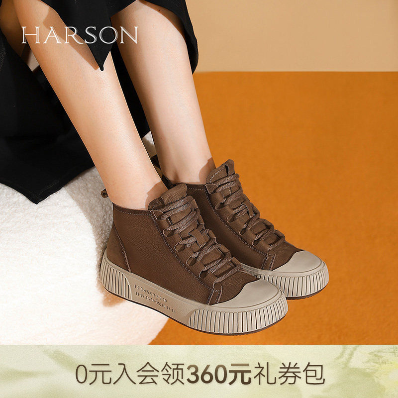 哈森工装马丁靴女秋新款复古单靴高帮运动休闲鞋HWA240116