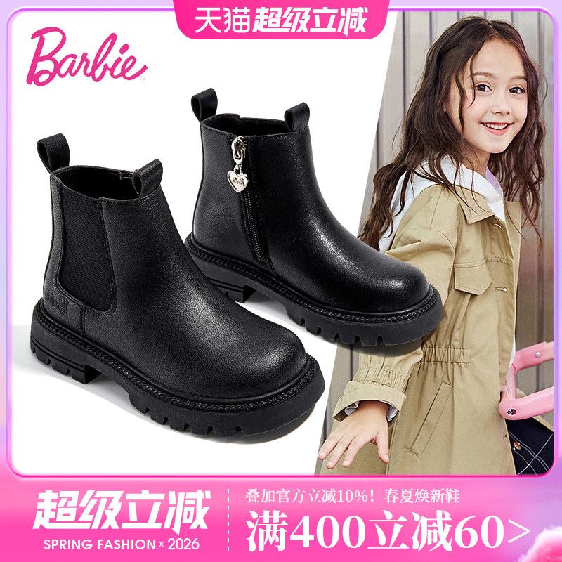 芭比童鞋女童马丁靴黑色短靴2025新款春秋英伦切尔西单靴儿童靴子