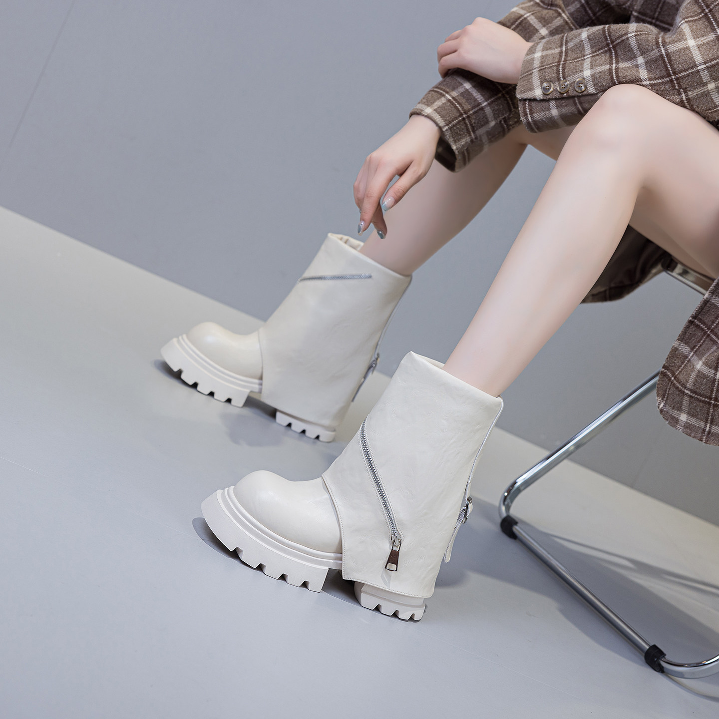 - 厚底内增高短靴女坡跟