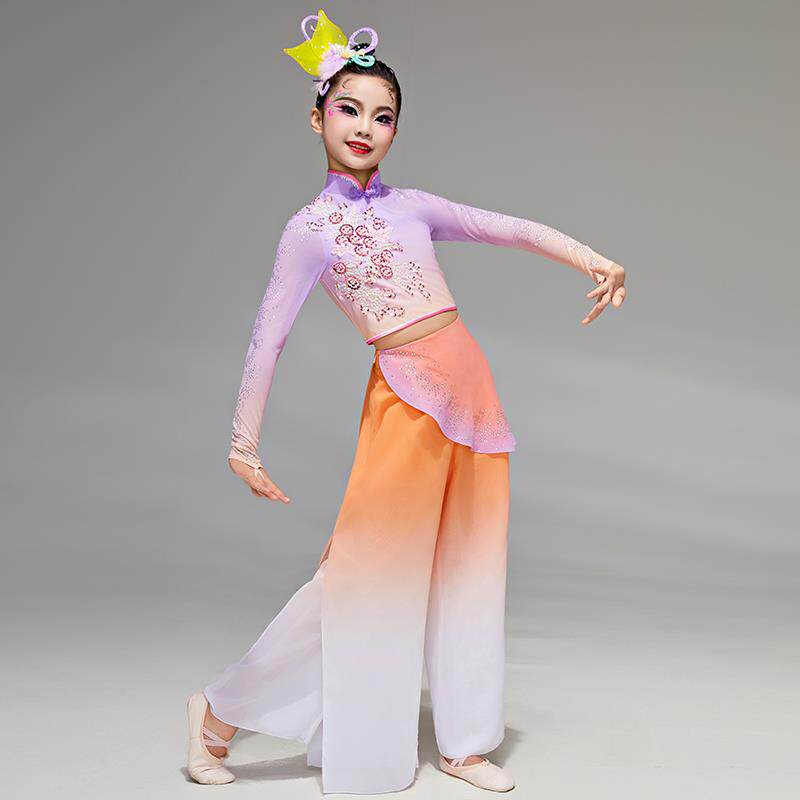高档儿童岭胶州间秧歌服蹈演出服女童新款艺考南古典舞陆丰钱鼓民