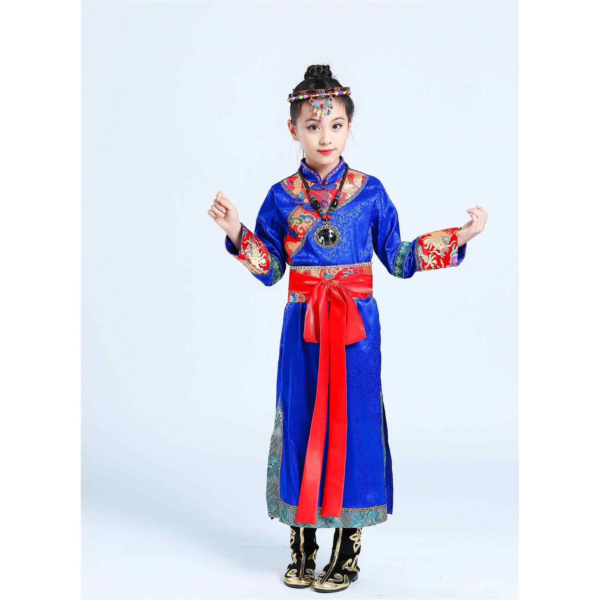 新款古服装儿童蒙古族舞蹈演出服蒙女男童56个民族牧舞新歌民筷子