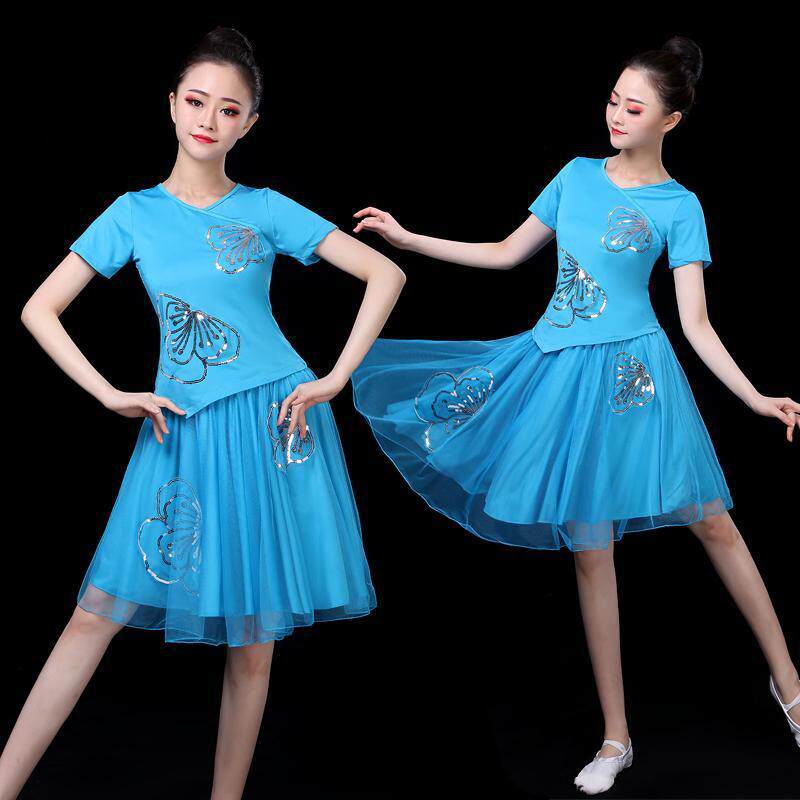广场舞服装女套装裙成人2022新款中老年演出短裙民U族舞蹈跳舞衣