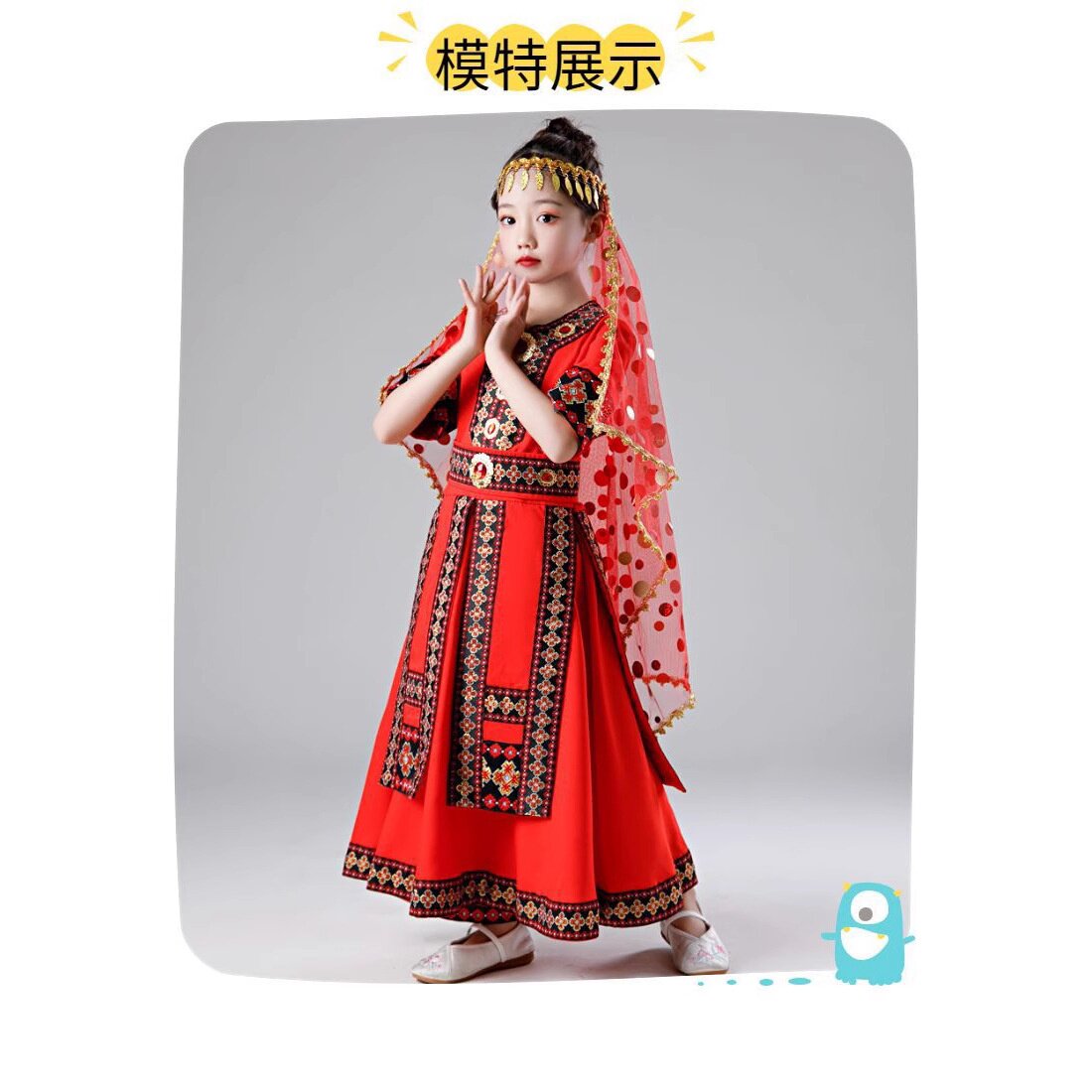 高档儿新疆舞蹈演出服女童维吾尔族少数族服装民童维族古裙子丽舞