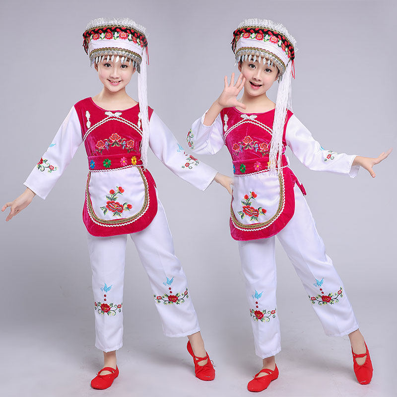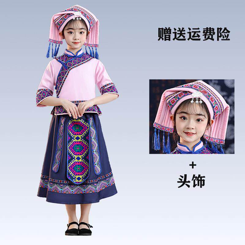新款族三月三女壮族童演出服装少数民儿族童苗族表演服瑶族彝舞蹈