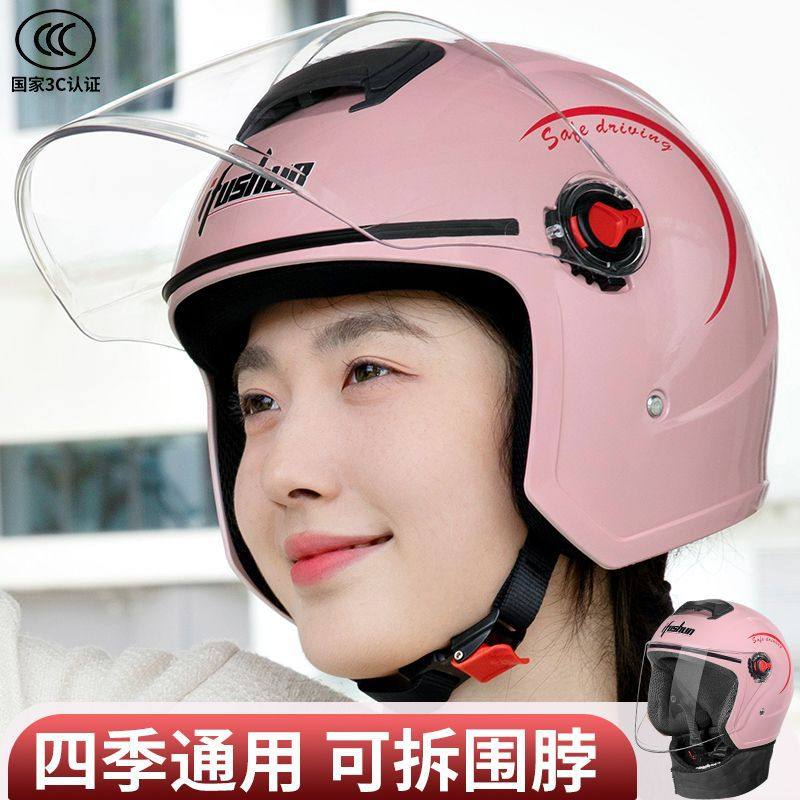 3C认证电动摩托车头盔男女士半盔夏四季通用电瓶车安全帽秋冬保暖